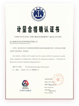 在产品和经营管理等方面的计量保证能力符合《江苏省企业计量确认规范》规定的要求。